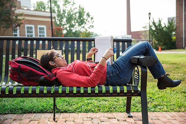 If you need a little fresh air, why not have a “sunbathe and study” session on one of the beautiful green lawns around campus? Keep an eye on your emails, because around exam time professors will bring their dogs to campus for Longwood’s popular Study Paws tradition. Everyone could use some puppy therapy! ~Mary