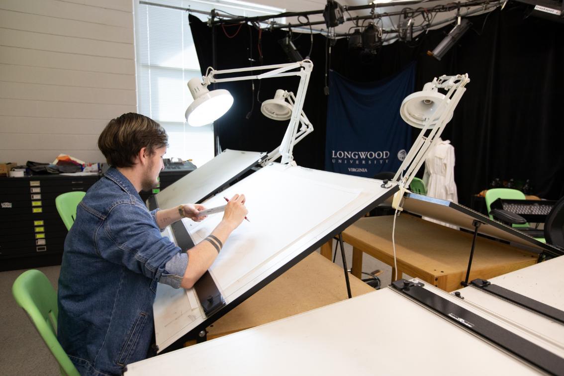The Design/Drafting Studio is a dedicated working space for Theatre Design & Technology students, designed to support both traditional and digital design work.