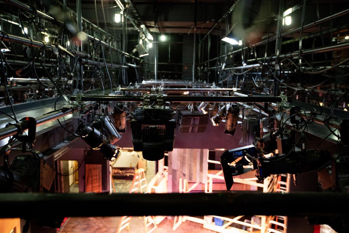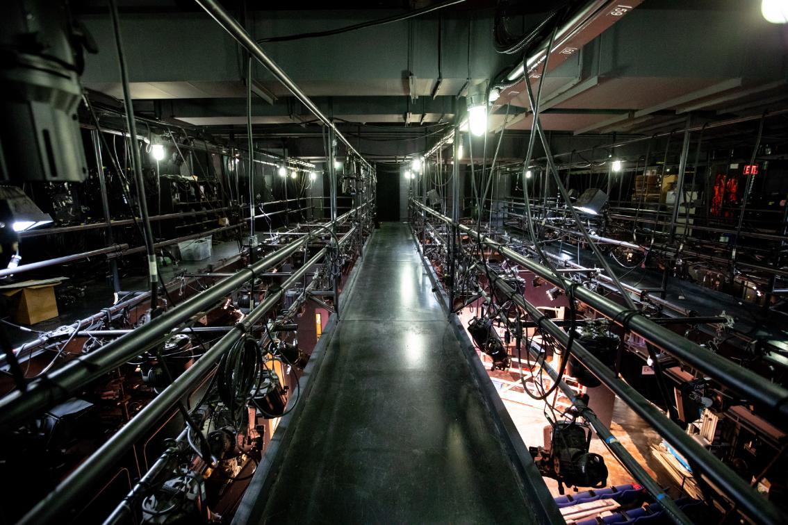 The catwalk is fully equipped with lighting tools used in both design and production work.